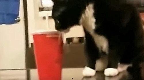 狗狗在厕所里东张西望,仿佛在寻找什么。突然,它发现了一个小瓶子,好奇地用鼻子去碰。结果,瓶子里的液体溅了出来,狗狗吓得四处逃窜。这一幕,让人想起了小时候玩捉迷藏的场景。
